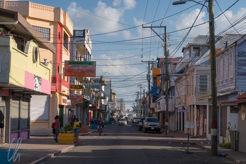 Die Albert Street, eine beiden Hauptstrassen im Zentrum von Belize City