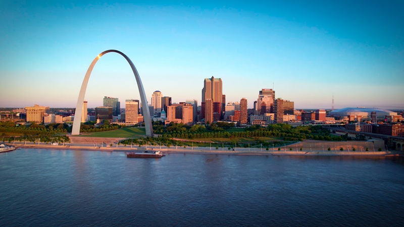 Geografia e Clima: Situado entre os rios Mississippi (leste) e Missouri (oeste), possui topografia suave. O clima é continental úmido, com invernos de neve e verões quentes.