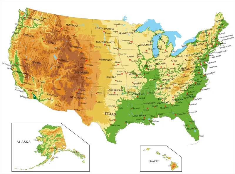 Além disso, o país inclui também o Distrito de Colúmbia (Washington, D.C.), que não é um estado, mas é onde fica a capital federal.