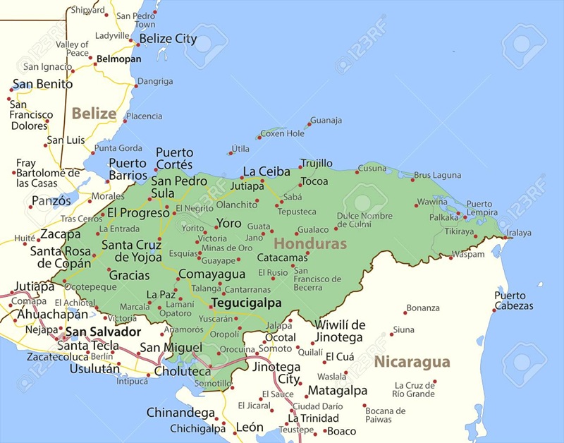 Cidades Principais: Tegucigalpa, San Pedro Sula, El Progresso, La Ceiba, Choluteca.