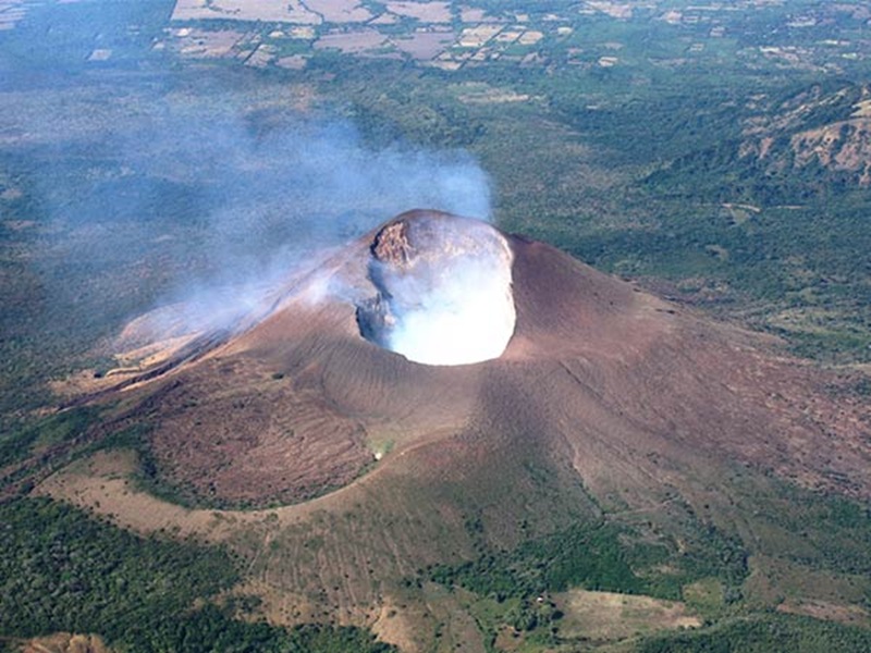 O vulcão Telica é um dos mais ativos, com frequentes erupções de gases e cinzas.