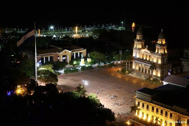 Reconstruída após um terremoto devastador em 1972. A Nicarágua é um país com alta atividade vulcânica e sísmica, localizado na região onde a Placa de Cocos subducta sob a Placa Caribenha. Isso resulta em uma cadeia de vulcões ativos e frequentes terremotos.